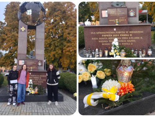Wspólnie z wychowankami z naszego internatu uczciliśmy pamięć św. Jana Pawła II. Złożyliśmy wienieci zapaliliśmy znicz pod pomnikiem Papieża Polaka. Młodzież przygotowała okolicznościową gazetkę, a na zakończenie wszyscy mieli okazję skosztować słynnej papieskiej kremówki.