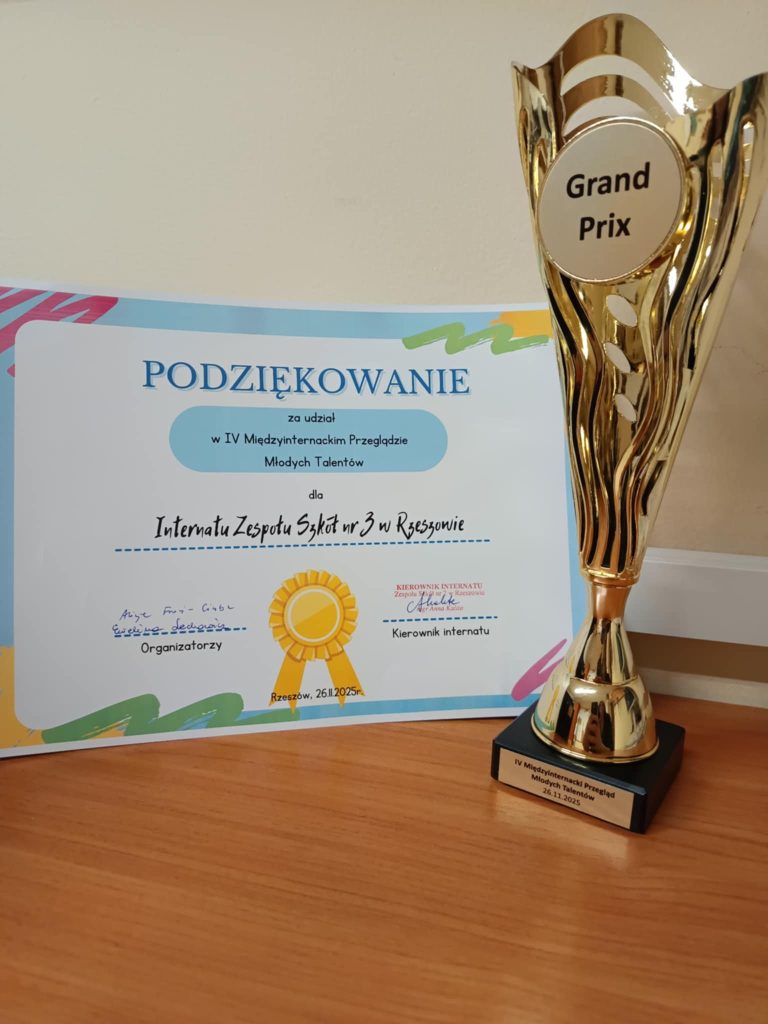 Za nami IV Międzyinternacki Przegląd Młodych Talentów,  zorganizowanym przez Internat Zespołu Szkół nr 2 w Rzeszowie. Bezkonkurencyjna okazała się Kamila Kurzawa, która zdobyła Nagrodę Grand Prix w kategorii wokalnej wykonując utwór „Matko tyś płakała…” Sanah & Igora Herbuta. Dziękujemy Organizatorom za zaproszenie, ciepłe przyjęcie, rodzinną atmosferę i niezapomniane artystyczne wrażenia!