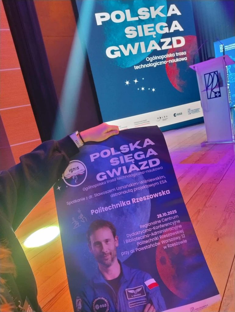 W dniu 28 października nasza młodzież miała okazję wziąć udział w kosmicznym wydarzeniu jakim było spotkanie z dr Sławoszem Uznańskim – Wiśniewskim podczas ogólnopolskiej trasy technologiczno-naukowej „IGNIS POLSKA SIĘGA GWIAZD.” Astronauta przybliżył kulisy swojej pracy, opowiadał o eksperymentach prowadzonych w warunkach mikrograwitacji oraz o tym, jak współczesna nauka pozwala realizować marzenia o podróżach w kosmos. Nie zabrakło anegdot i ciekawostek kosmicznych, a niektórzy szczęśliwcy zdobyli kosmiczny autograf polskiego astronauty.